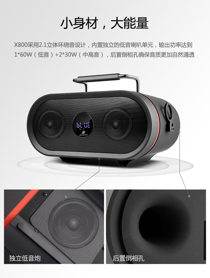 . 支持蓝牙,USB, LINE IN ,PC ,TF卡等输入方式